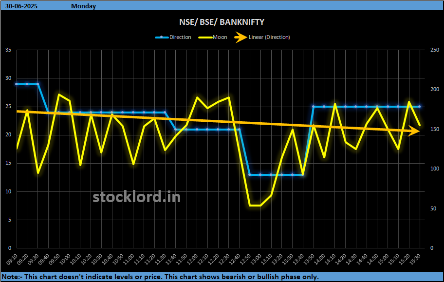 | 30 June | Moon° in Leo (Ve@), Pluto* vedha | ⚠️ Bullish → Reversal | Book profits by 13:30; watch Pluto reversal |