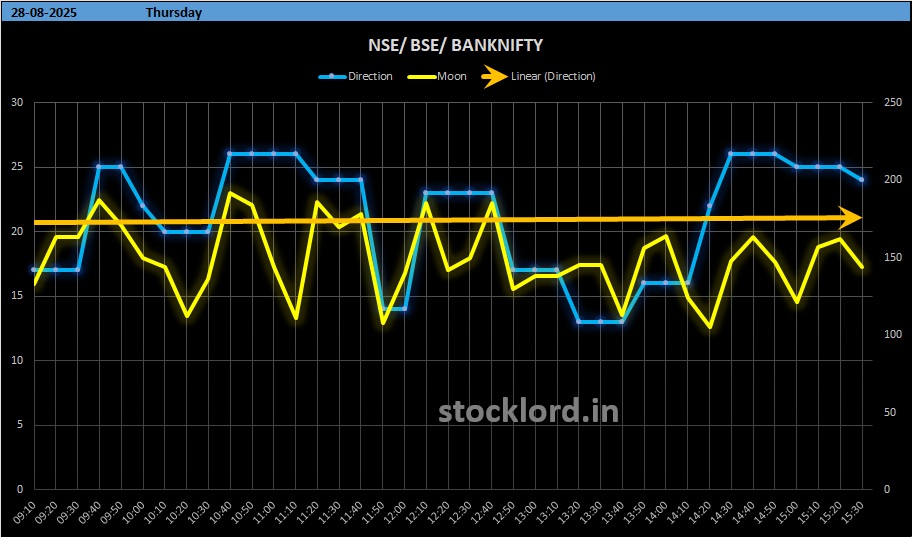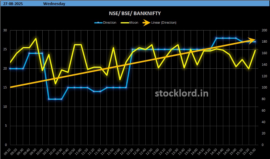 - Moon’s Nakshatra Movement – On 27th August, Moon’s unfavorable nakshatra placement triggered bearish pressure, validating the drop in sentiment.