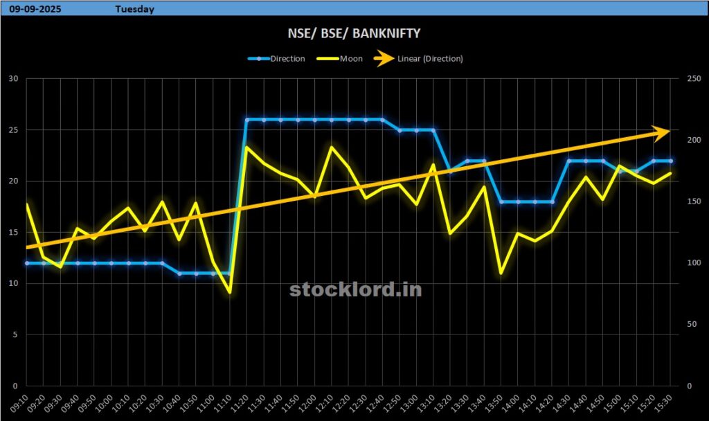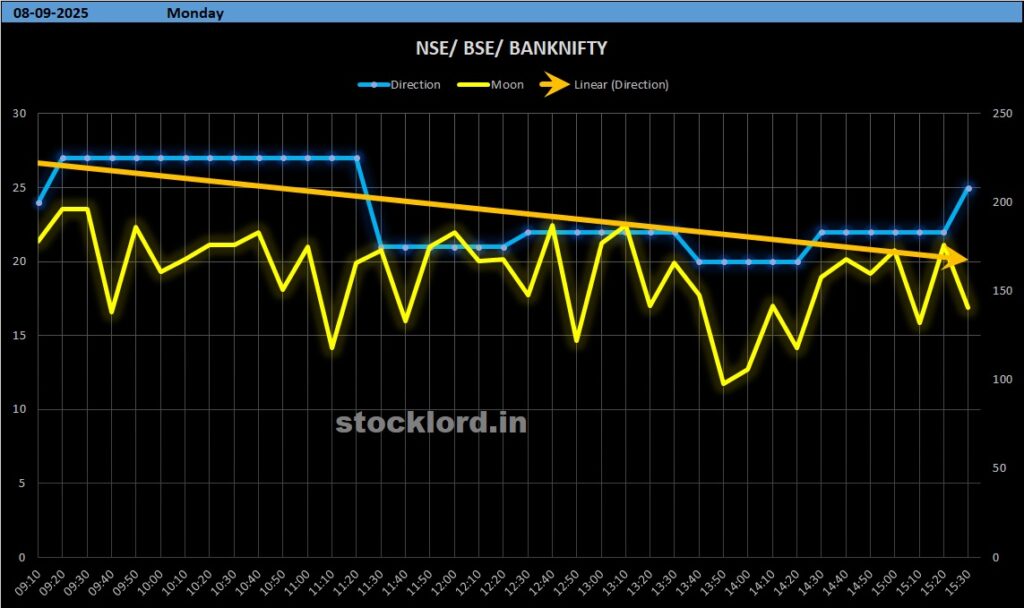 The Indian stock market enters the second week of September 2025 with a highly eventful planetary setup, especially for Nifty 50 and Bank Nifty traders. The interplay of Moon with Rahu, Saturn, Neptune, and Mars in the Sarvatobhadra Chakra (SBC) indicates a week dominated by high volatility, sharp intraday swings, and a mix of bullish and bearish phases. Alongside astrology, critical Gann and intraday support-resistance levels suggest clear trading ranges for both Bank Nifty and Nifty 50.