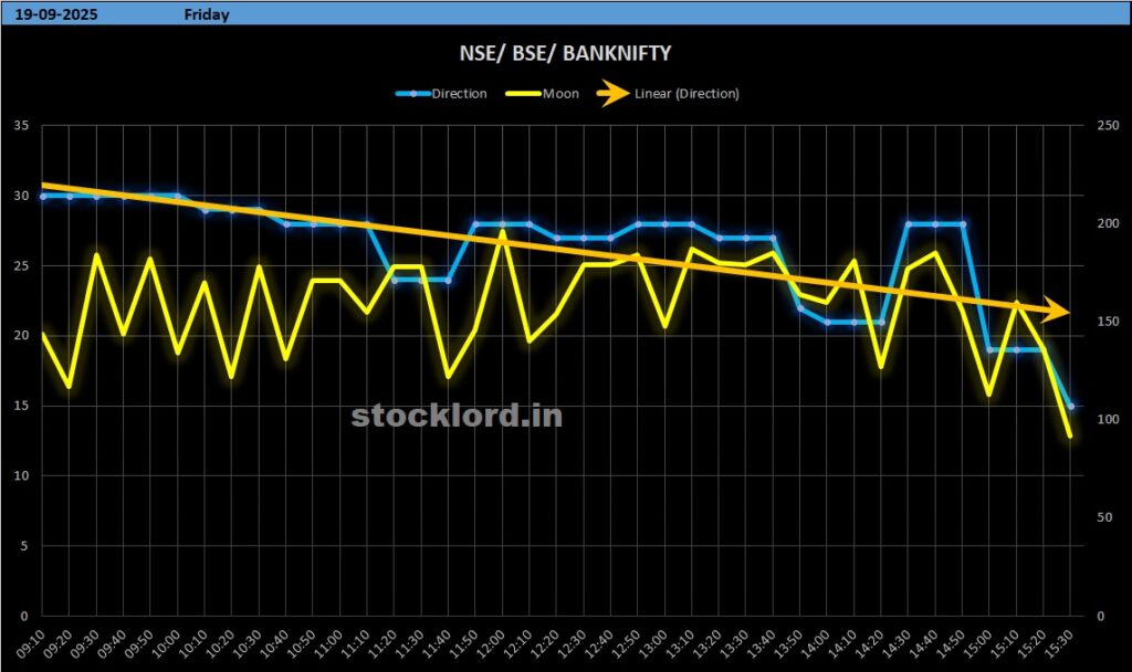- 19 Sep (Fri) → Moon–Venus conjunction → Early bearish bias but recovery likely (profit booking + short covering).