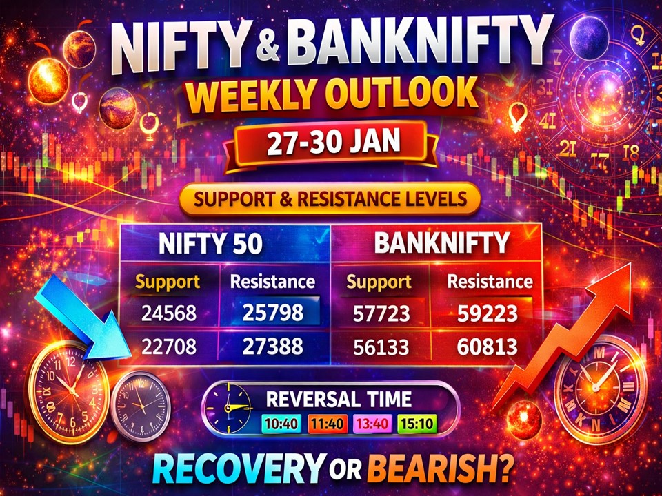 In this article, we present a complete astro-technical weekly outlook for Nifty 50 and BankNifty covering: