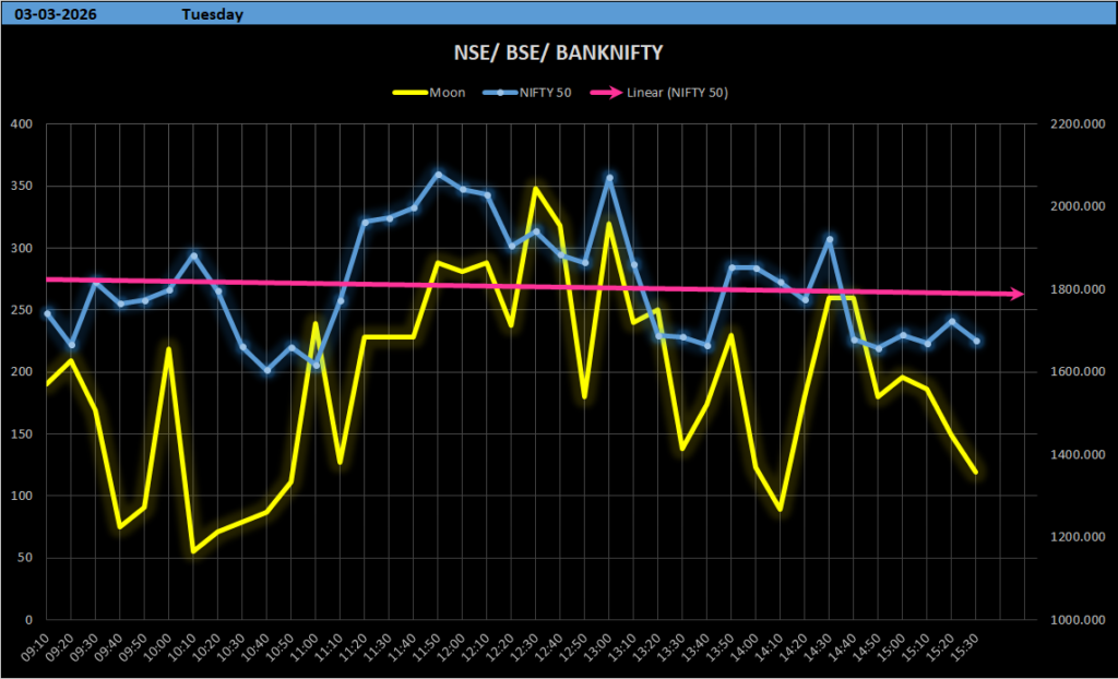 - Lunar Eclipse on March 3 (Moon conjunct Ketu, Sun conjunct Rahu) traditionally coincides with sudden price swings and unpredictability in markets.